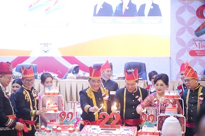 Sementara Bupati Minut, Joune Ganda, dalam laporannya merinci perjalanan pembangunan daerah selama 22 tahun, termasuk capaian ekonomi, infrastruktur dan program sosial.