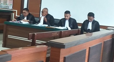 Tak hanya sampai di situ, Hanafi pun menyodorkan kejanggalan itu kepada majelis hakim dengan disaksikan Jaksa Penuntut Umum (JPU) Lili Muaya, SH dan Laura Tombokan, SH.