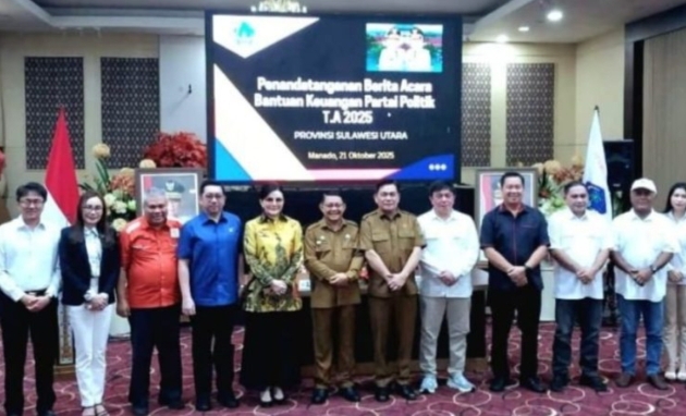 Pilarmanado.com, MANADO — Sebanyak sembilan partai politik (Parpol) menerima bantuan dana pembinaan sebesar Rp 1,7 miliar, dari Pemerintah Provinsi (Pemprov) Sulawesi Utara (Sulut), Selasa (21/10/2025).
