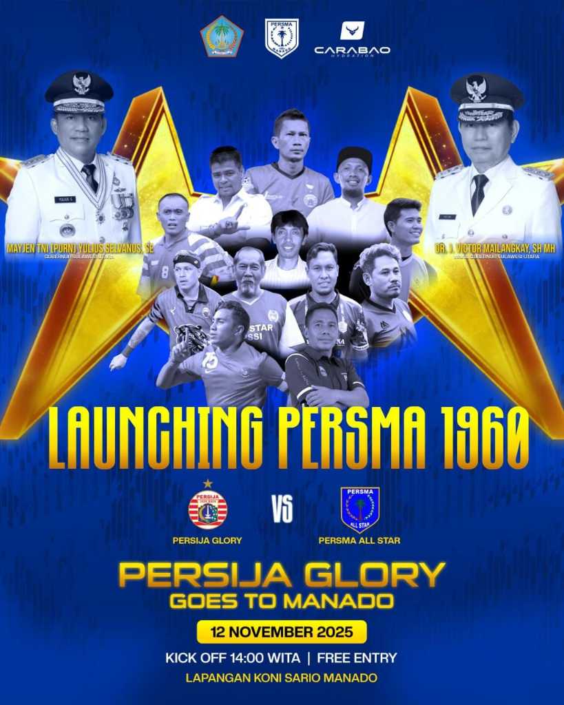 Pilarmanado.com, MANADO – Sulawesi Utara (Kota Manado –red) kembali menjadi tuan rumah friendly match atau pertandingan eksibisi antara Persma All Star melawan Persija Glory, di lapangan sepak bola Komite Olahraga Nasional Indonesia (KONI) Sario, Rabu, 12 November 2025.